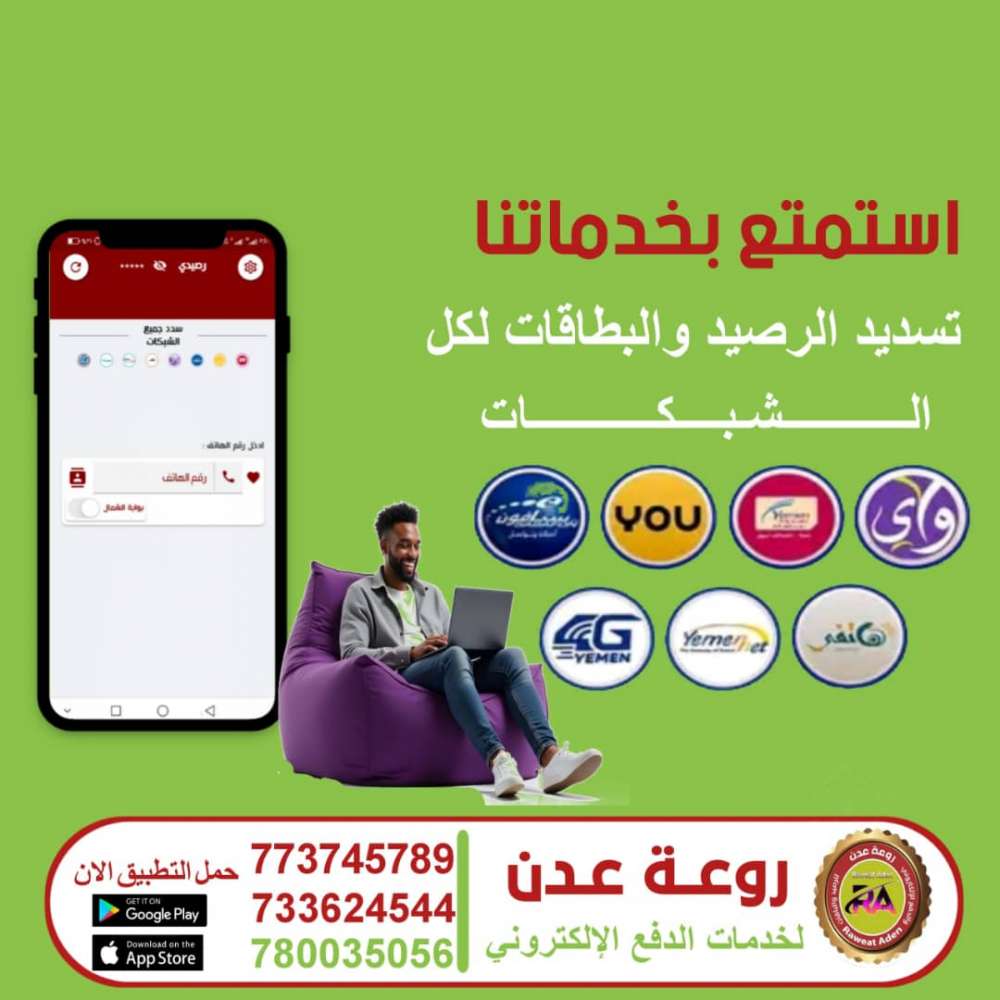 - تسديد جميع الشبكات اليمنية(يمن موبايل,يو,سبافون,واي,الهاتف الثابت,والانترنت الارضي,تسديد فواتير الماء والكهرباء)